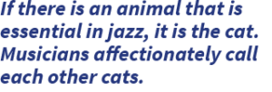 However, if there is an animal that is essential in jazz, it is the cat. Indeed, musicians affectionately call each other cats. And why does the cat occupy this place? Perhaps because it is an animal with which jazzmen feel reflected and identified. They are nocturnal animals, just like jazz musicians who work mainly at night. Their agile, flexible, gracious movements are a reflection of the same lithe and graceful phrasing that musicians play to produce the swing. They are creatures that enjoy freedom, attracted by the life of a wanderer, given that, indeed, because of their work, jazz musicians often lead an erratic, unconventional life. All this series of similarities, among others, have led many songs to allude to cats as jazz musicians: All The Cats Join’ in; A Chat with Cat, El Gato, etc.