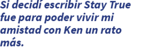 Nos conocimos durante nuestro primer mes de universidad, vivíamos en la misma residencia en la Universidad de Berkeley, en California. Cuando lo vi por primera vez, pensé que no tendríamos ningún punto en común. Me pareció que era lo contrario de cómo me veía yo mismo: él era guapo, atlético y cada cosa que hacía lo ejecutaba cargado de seguridad y autoconfianza. Eso sí, coincidíamos en que los dos éramos asiático americanos. A medida que le fui conociendo más, me di cuenta de que no éramos tan diferentes y nos hicimos muy amigos. Casi prefería su forma de ver el mundo que la mía. Si decidí escribir Stay True fue para vivir nuestra amistad un rato más.