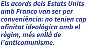 És el resultat d’una barreja de factors, però hi ha un element que ve de lluny. Quan el règim franquista va haver de començar a tancar acords amb els Estats Units, ho va fer guardant un perfil baix sobre moltes de les seves conseqüències. No li interessava que es parlés gaire de la subordinació estratègica que es va assumir, ni de com l’ajuda nord-americana va permetre reconduir algunes de les greus mancances i incapacitats de les polítiques públiques del règim dictatorial. Aquell silenci ha donat lloc al desconeixement actual.